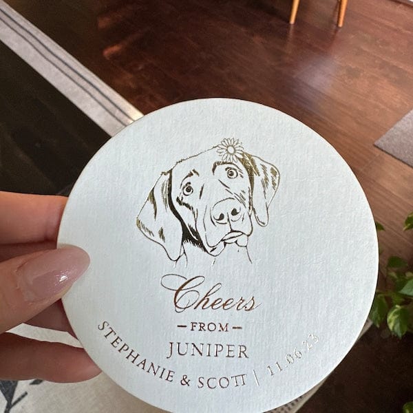 Celebrate your big day with a personal touch using these Custom Illustrated Pet Coasters! These coasters are the perfect way to include your furry friends in your wedding celebration and add a special touch to your table decor. Your guests will love your thoughtful attention to detail!