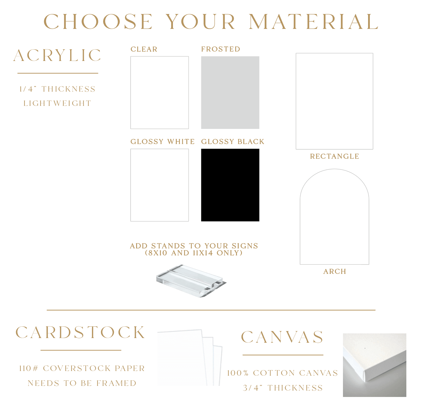 - Acrylic (Clear, Frosted, Glossy White, Glossy Black)