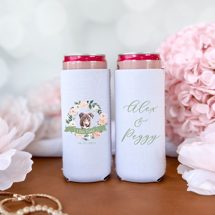 Celebrate your big day with a personal touch using these Pet Wedding Slim Can Coolers! These can coolers are the perfect way to include your furry friends in your wedding celebration. These coolers also make thoughtful and memorable keepsakes for your guests, reminding them of the special bond between you and your pet.