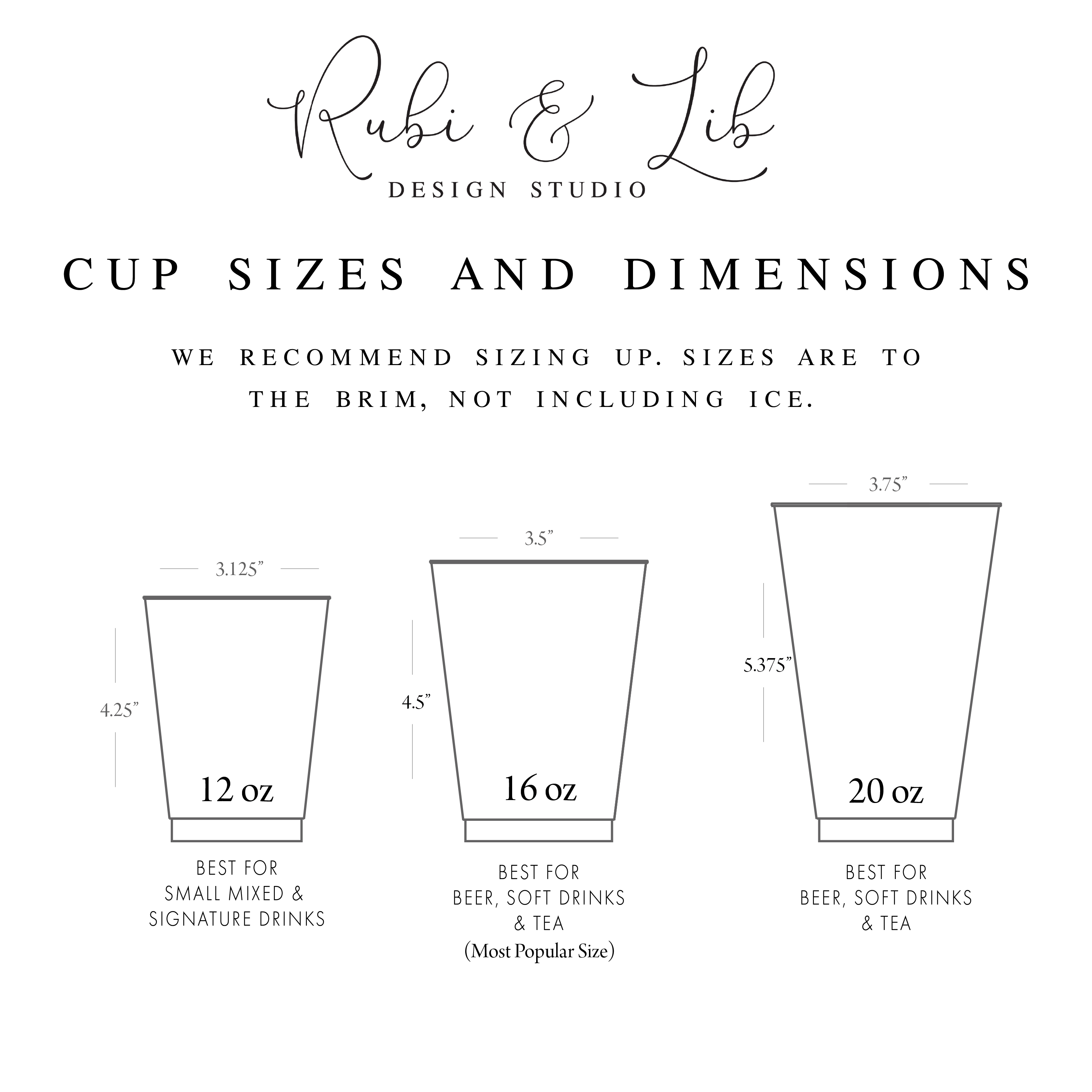 Send your guests home with personalized frosted shatterproof cups that they will use for years to remember your special event. They would be great at a wedding, bridal shower, bachelorette/bachelor party, birthday, or any other occasion where a party is involved!