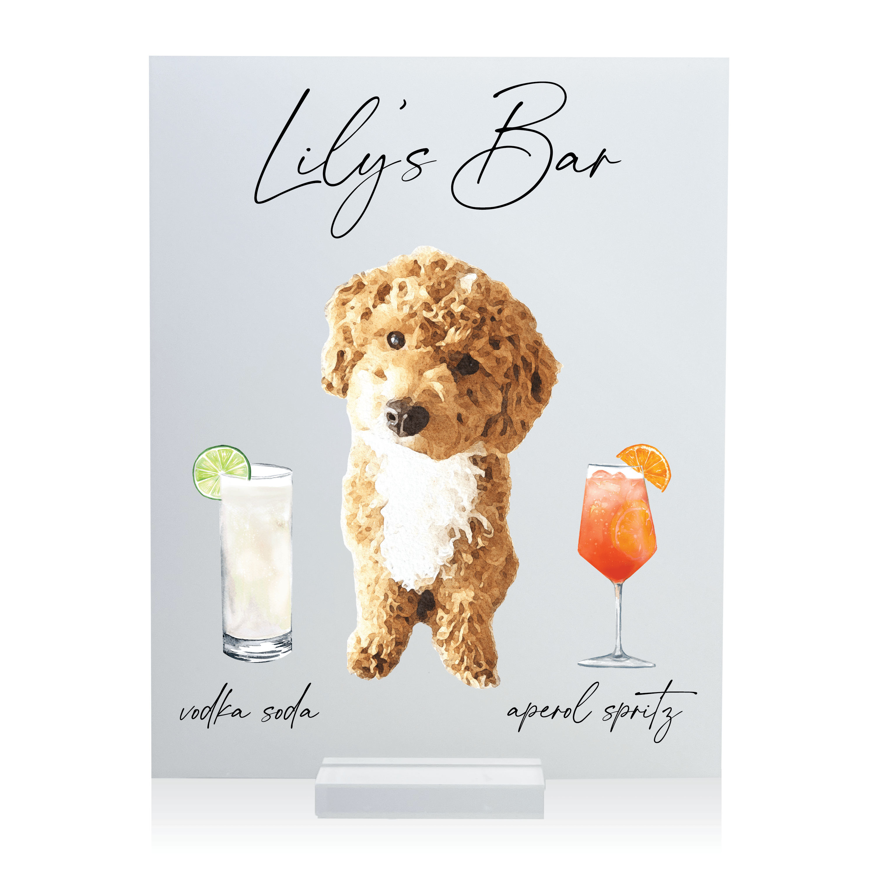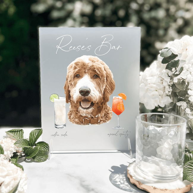 This is a perfect signature drink sign for a wedding or party. Add a special touch and include a likeness of your favorite four legged friend to your wedding reception bar.
