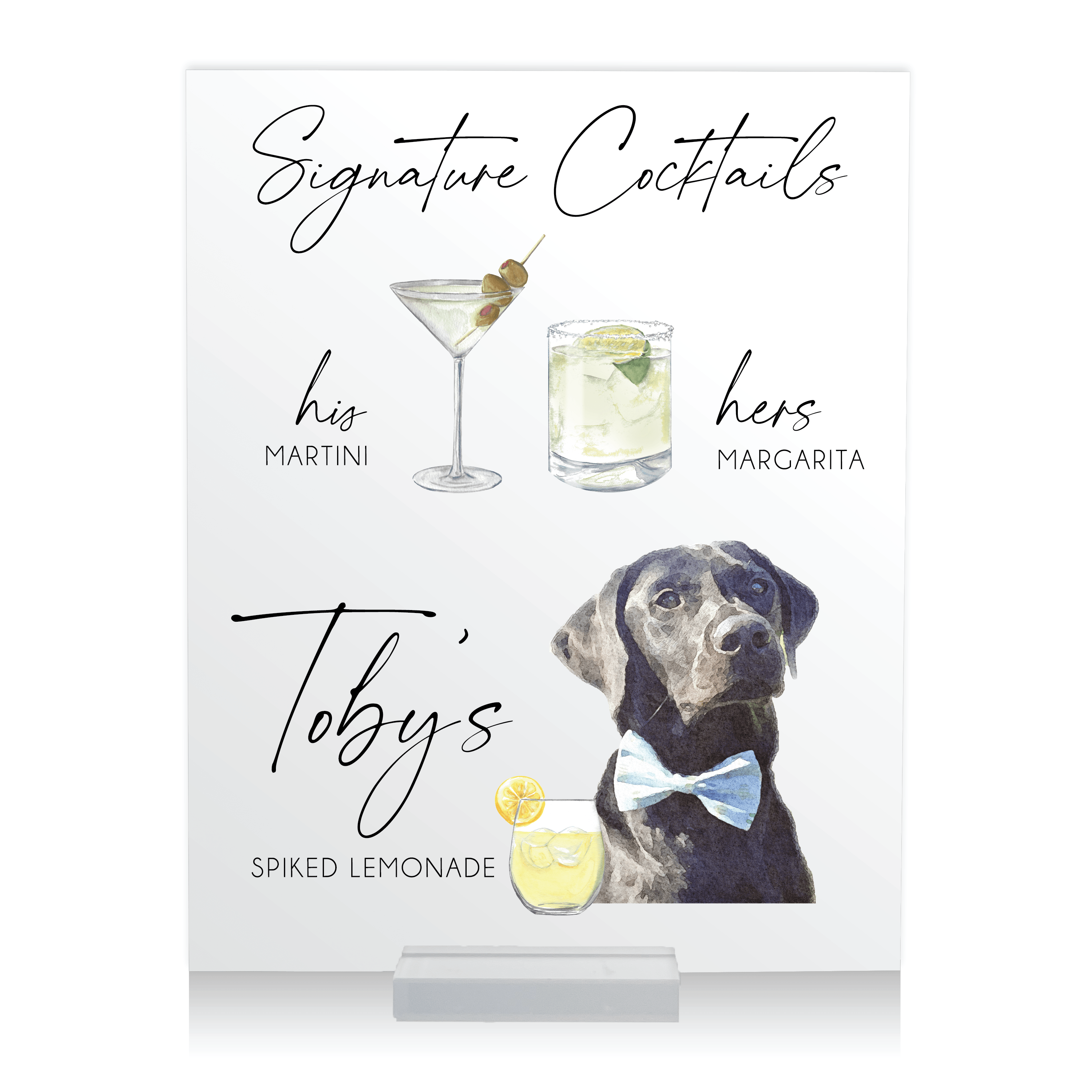 This is a perfect signature drink sign for a wedding or party. Add a special touch and include a likeness of your favorite four legged friend to your wedding reception bar.